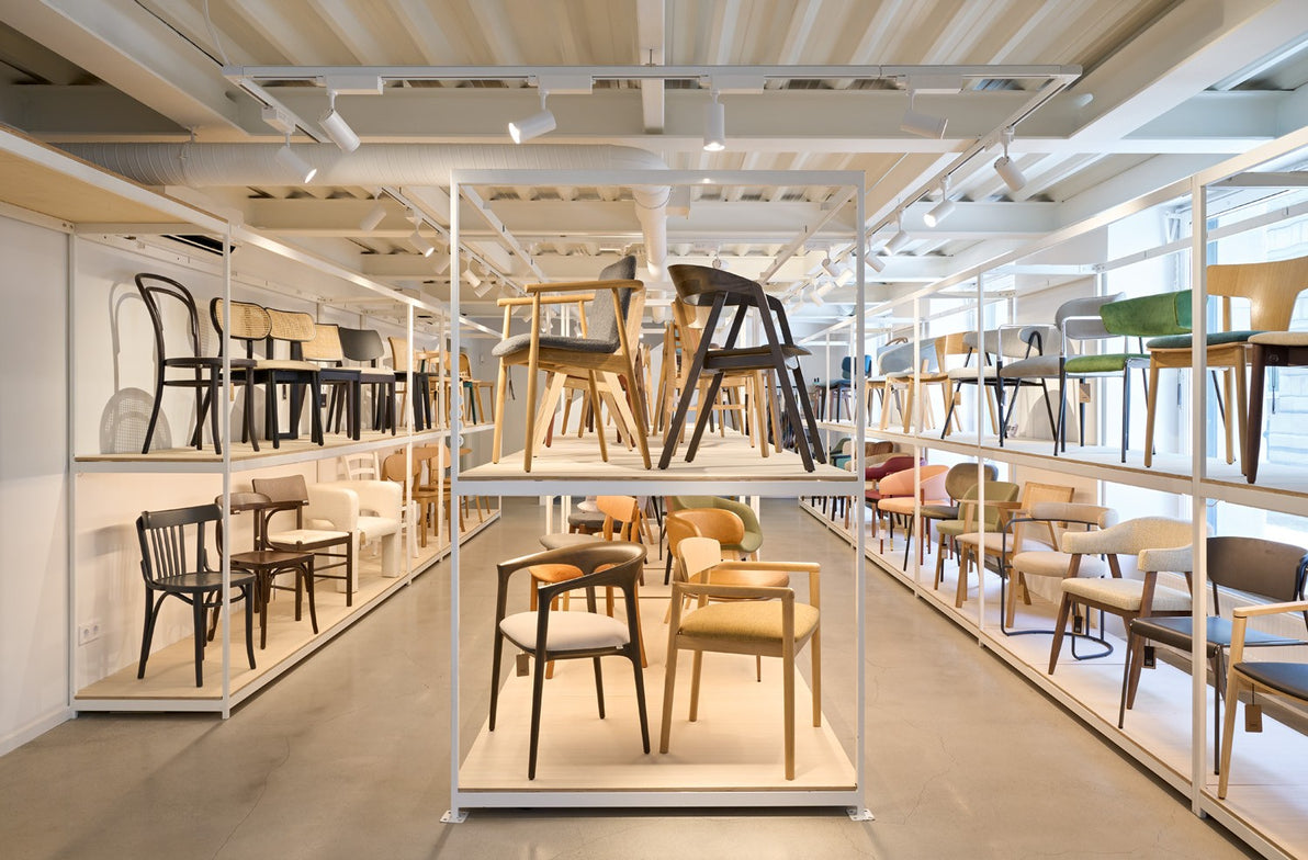 450 m²-es belvárosi bemutatótermünkben számtalan bútor megtekinthető és kipróbálható. A maximálisan felszerelt showroom lehetővé teszi, hogy a válogatás és a tervezés átláthatóbb, gyorsabb és inspirálóbb legyen, mint egy online rendelés során.